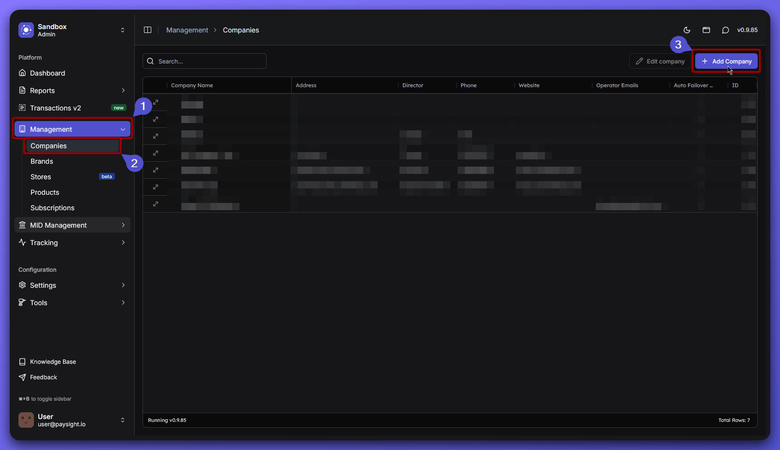 Creating a Company in Paysight Dashboard