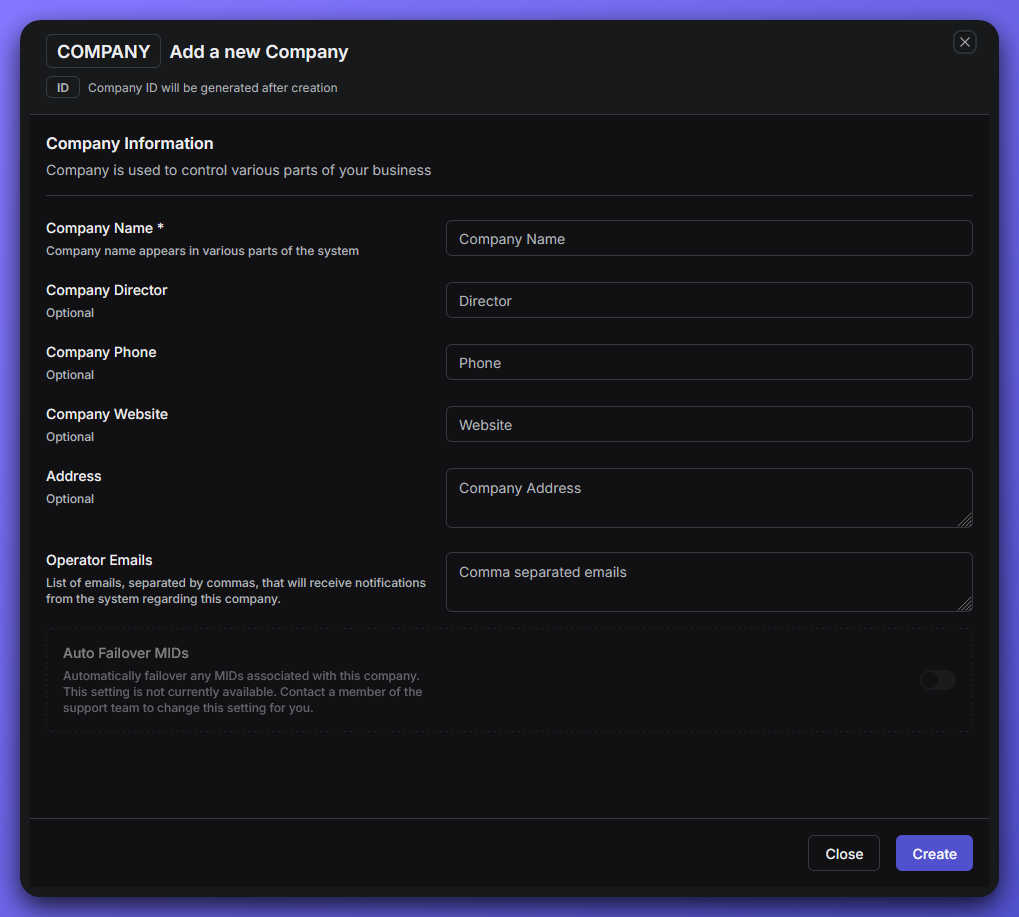 - Operator Emails: List the email addresses (separated by commas) of team members who should receive notifications about this company. This ensures the right people stay informed about important updates or issues.